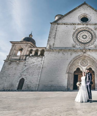 Assisi is more than a city; it's an emotion. And it is here, beneath the clear skies of Umbria, that Fabio and Valentina chose to celebrate their love. Imagine the sunlight bathing the pink stone, the rolling hills framing an embrace, and history itself enveloping every promise. This is the heart of their wedding. Their story was captured amidst a peaceful and radiant beauty. From the intimate medieval streets to the majestic Basilicas, every photograph speaks of joy, elegance, and the light that defined their day. A wedding in Assisi is a celebration of Italian grace and spirituality—the ideal setting for couples seeking a profoundly memorable union. An eternal, luminous fairytale.